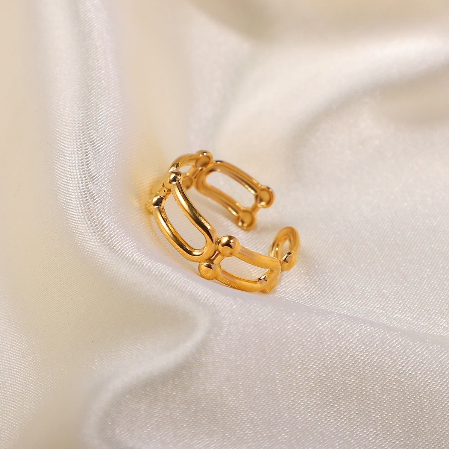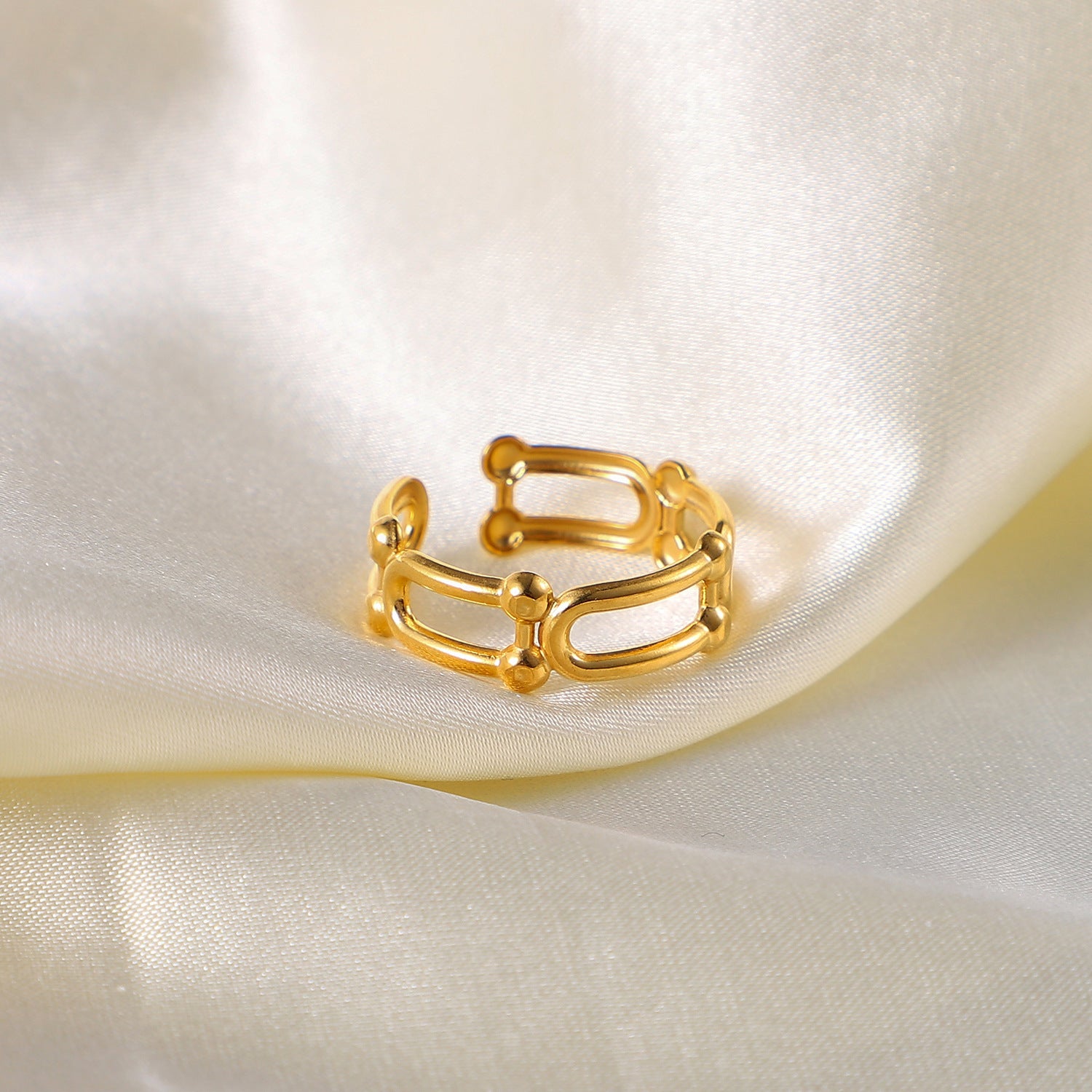 Made from high-quality gold-plated metal, the Brilora ring features a smooth and shiny surface that resists tarnishing. Its adjustable open design allows for a flexible fit, ensuring comfort and ease of wear. The ring measures approximately 2cm in diameter, embodying a chic and minimalist aesthetic.